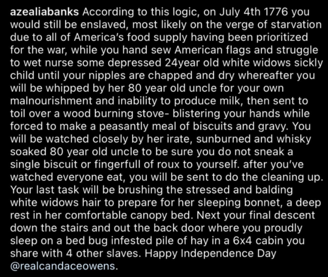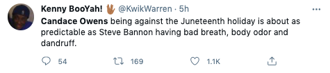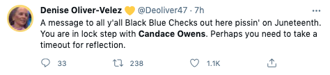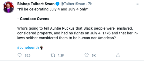 “Juneteenth is soooo lame. Democrats really need to stop trying to repackage segregation. I’ll be celebrating July 4th and July 4th only. I’m American.”