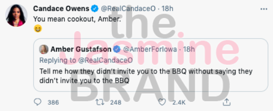 She also responded to a Twitter user who questioned why Candace Owens isn’t “invited to the BBQ.” She wrote,