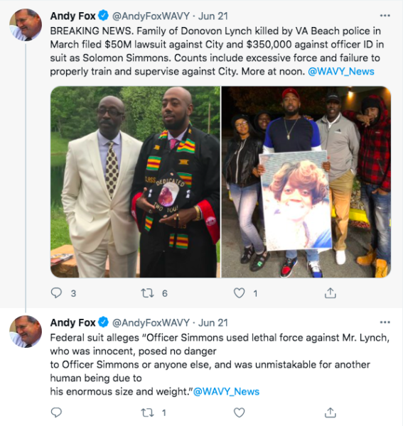 As mentioned above, the City of Virginia Beach is also listed in the lawsuit because it allegedly failed to properly train officers on how to use deadly force and other techniques that would have prevented Donovon Lynch’s death, according to the suit.