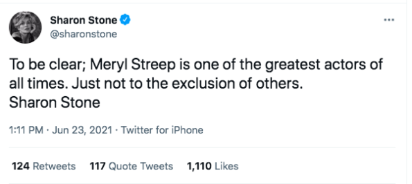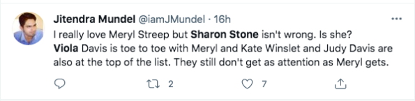 “To be clear; Meryl Streep is one of the greatest actors of all times. Just not to the exclusion of others.