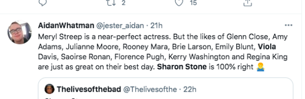“To be clear; Meryl Streep is one of the greatest actors of all times. Just not to the exclusion of others.