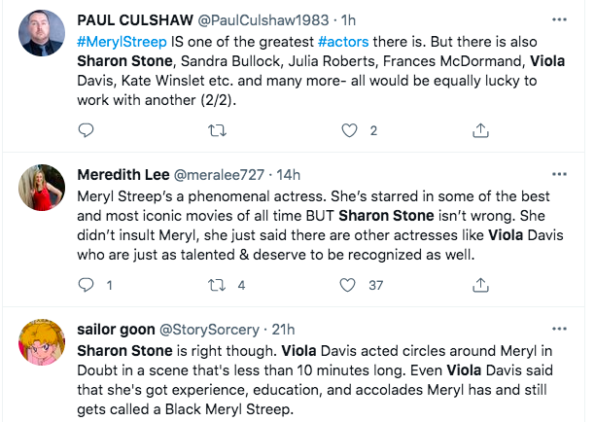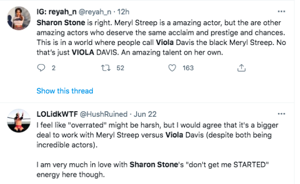Sharon Stone Says Viola Davis ‘Is Every Bit The Actress Meryl Streep Is’ & Trends Online As Fans Seemingly Agree With Her