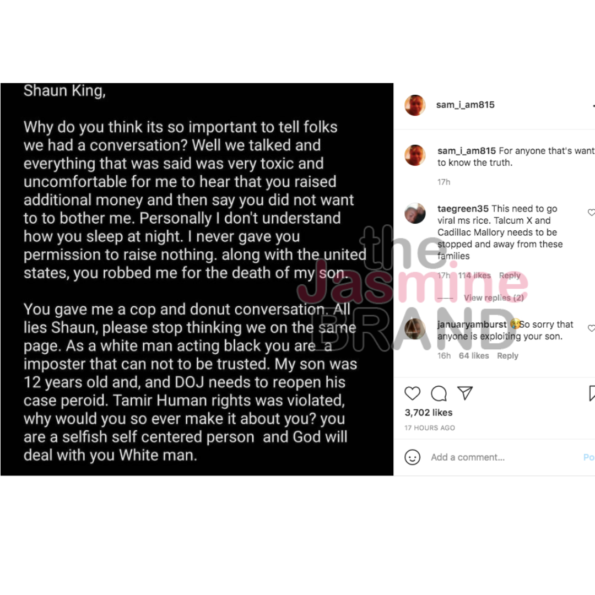 Following Samaria Rice’s IG post, Shaun King became a trending topic on Twitter as many people joined in and called him out as well for seemingly making a now-deleted response post expressing that he is a black man.