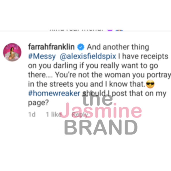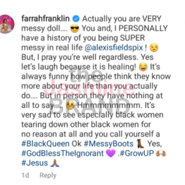 Farrah then left one more lengthy comment and said she’ll be praying for Alexis.
