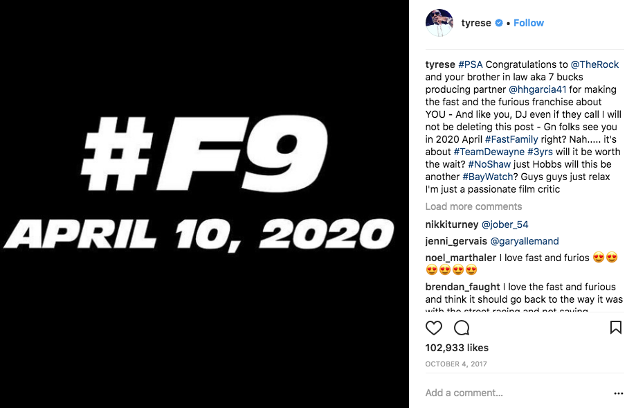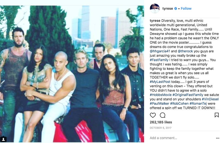 The Fast & Furious co-stars started feuding in 2017 after Tyrese blamed The Rock for postponing F9 (which was released Friday, June 25th) when he landed his own spinoff Hobbs & Shaw. See some of Tyrese’s social media posts below.