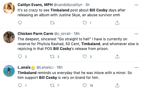 Timbaland to his Bill Cosby IG post pic.twitter.com/KEQgXYrzYq