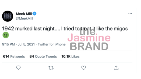 So far Meek Mill nor Travis Scott has spoken on the alleged altercation. Meek Mill did however seemingly share via Twitter that he was a little drunk during the event. On July 5 he tweeted,