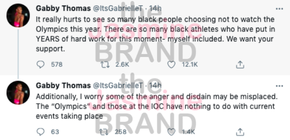 “It really hurts to see so many black people choosing not to watch the Olympics this year. There are so many black athletes who have put in YEARS of hard work for this moment- myself included. We want your support”