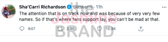 Olympic runner Gabby Thomas expressed her disappointment in many people’s decision not to watch the Olympics this year after Sha’Carri Richardson was banned – and it looks like Sha’Carri Richardson has a response.