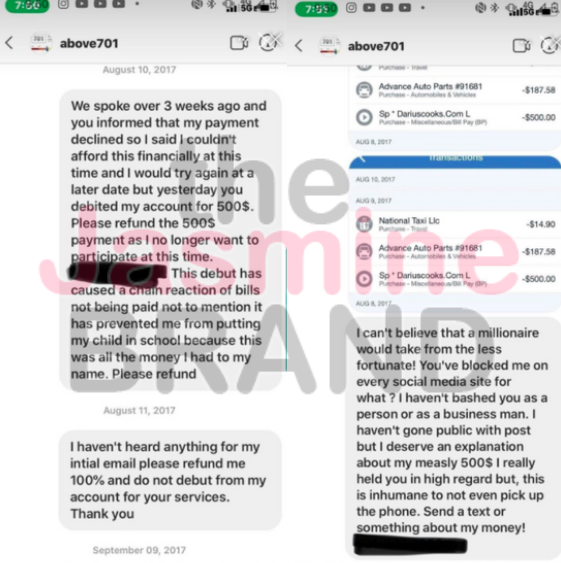 Angela “The Kitchenista” Davis is just one of Darius Williams’ fellow celebrity chefs that have called him out online. She shared stories from a social media user who said Darius Williams took $500 from her account for a credit repair service and went MIA when she asked for a refund.