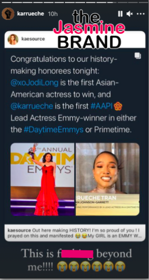 Karrueche Tran is now the first Asian and Pacific Islander to win a Daytime or Primetime Emmy for lead actress.