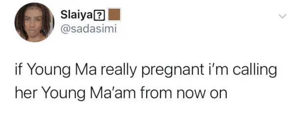 Brooklyn indie rapper Young M.A—born Katorah Marrero—is trending on social media over a confirmed rumor. Tonight (July 20th), an unconfirmed rumor began to spread that Young M.A is pregnant. While there’s no word on how the rumor has started, plenty of reactions have popped up on Twitter. See some of them below.