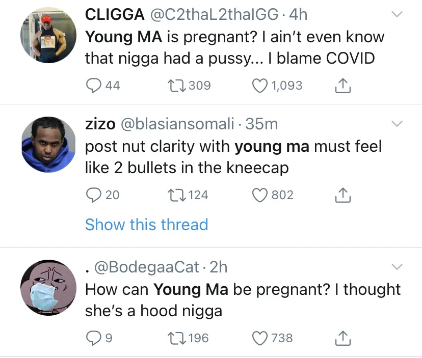 Brooklyn indie rapper Young M.A—born Katorah Marrero—is trending on social media over a confirmed rumor. Tonight (July 20th), an unconfirmed rumor began to spread that Young M.A is pregnant. While there’s no word on how the rumor has started, plenty of reactions have popped up on Twitter. See some of them below.