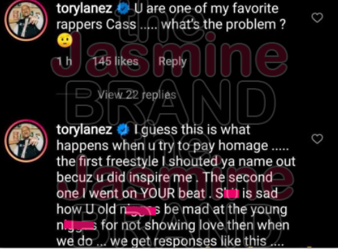 “I guess this is what happens when u try to pay homage…..the first freestyle I shouted ya name out becuz u did inspire me. The second one I went on YOUR beat. S*** is sad how U old n***as be mad at the young n***as for not showing love then when we do … we get responses like this ….”