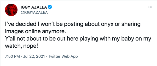 “I’ve decided I won’t be posting about onyx or sharing images online anymore. Y’all not about to be out here playing with my baby on my watch, nope!”