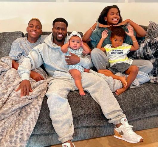 Kevin Hart is father to daughter Heaven, 16, son Hendrix, 13, son Kenzo, 3, and daughter Kaori, 9 months.