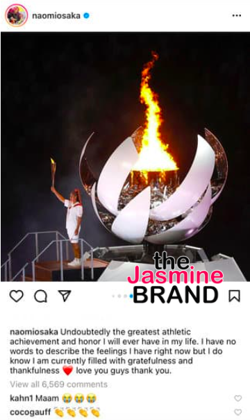 Naomi Osaka’s Olympic experience is already a memorable one. She was selected to help kick off the long-awaited event and lit the Olympic cauldron earlier today (July 23).