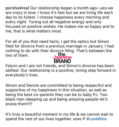 As previously reported, RHOA star Porsha Williams and businessman Simon Guobadia, announced their engagement in May, just one month after his split to Falynn was announced.