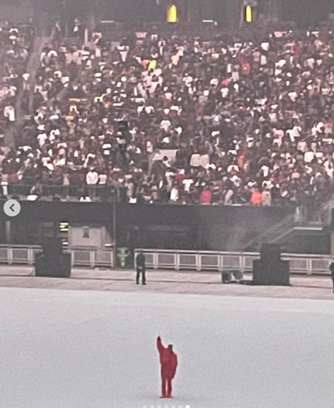 As previously reported, last Thursday Kanye held a massive listening party for his upcoming album ‘Donda’ in Atlanta, Ga. During the event, The rapper wore a full face mask, a puffer jacket that seems to be the red version of the coat he designed for GAP, paired with a red top and pants to match.