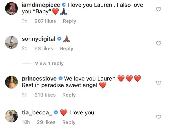 “This is my amazing ,beautiful , funny , vibrant, loving ,talented , smart and hardheaded princess mermaid Aquarius. If you see this post scrolling by with her comment or just say to yourself “ i love you LAUREN ”because they say that souls can feel your love #rip [broken-heart Emoji]”