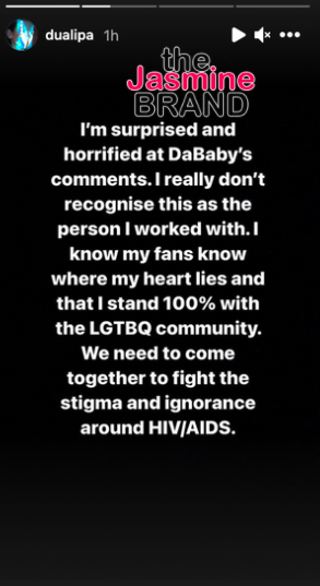 Dua Lipa previously called out DaBaby shortly after his comments went viral.