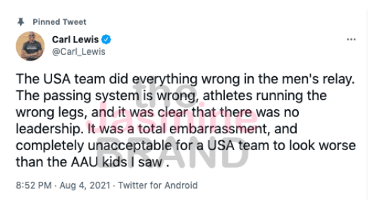 Track icon Carl Lewis isn’t happy with what he saw in Team USA’s Men’s 4×100-relay race for the Olympics this year.