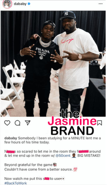 It’s safe to say 50 Cent is taking on a mentorship role with DaBaby. Just days before his Rolling Loud performance, DaBaby saluted 50 Cent, who responded,