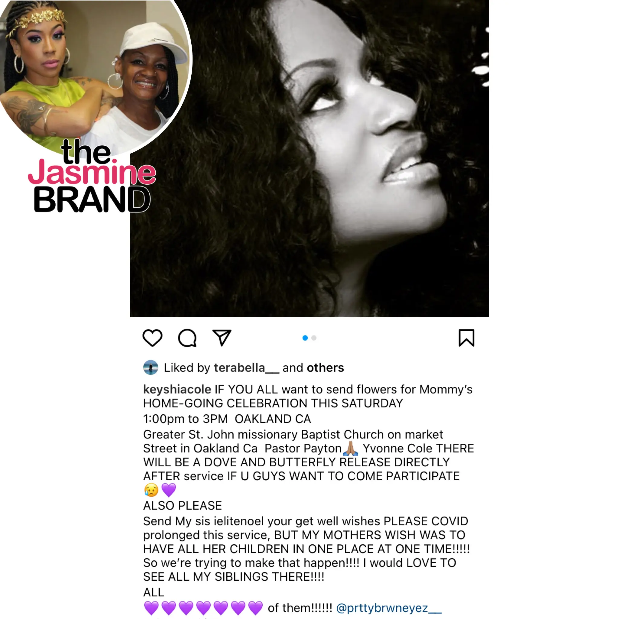 Keyshia also shares that the service was delayed because her sister Elite has Covid. She also emphasized that she wants all her siblings in attendance.
