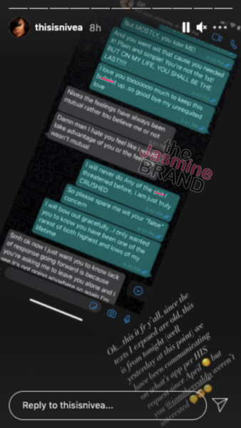 Nivea didn’t stop there. She posted even more alleged text messages from Patterson that appear to back her side of the story that they had a sexual relationship and pursued each other.