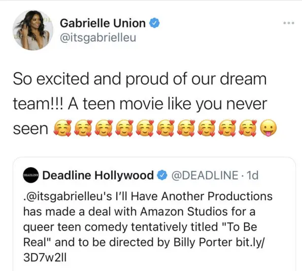 Gabrielle Union is about to “keep it real” after making a momentum deal with Amazon Studios. The actress’ ‘I’ll Have Another Production‘ is set to produce a queer teen comedy titled To Be Real. The film is set to take place with three queer high school seniors on a quest to attend their first New York Pride Parade.