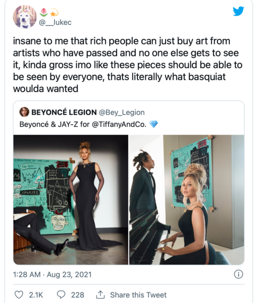 However, the commentary on this Tiffany & Co. collab wasn’t all negative. One Twitter user spoke about how no one really knows what Jean-Michel Basquiat would think of his painting being used since the artist passed in 1988.