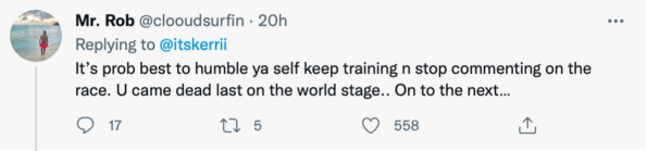 Another Twitter critic chimed in with an attempt to humble the sprinter.