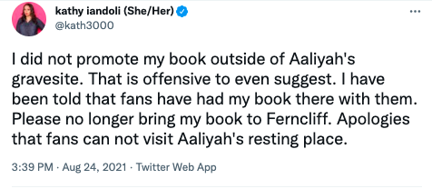 “However, due to the behavior of an individual that has been to Aaliyah’s resting place in order to promote a book, I have been forced to make a drastic change at Ferncliff Cemetery and Mausoleum.”