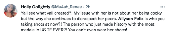 Allyson Felix has yet to respond to Sha’Carri Richardson’s IG post.