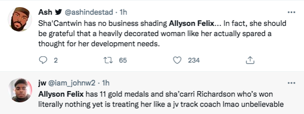 How do you feel about Sha’Carri Richardson’s response to Allyson Felix? Tell us in the comments below.