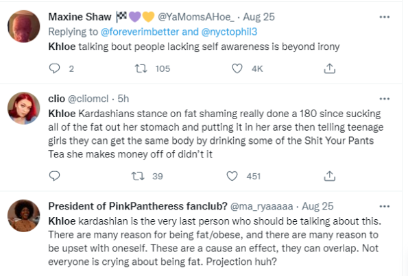 In April 2021, Khloé addressed her own body struggles as she shared a topless photo. It came after an unauthorized and unedited picture of her was posted online. On Instagram, she wrote: