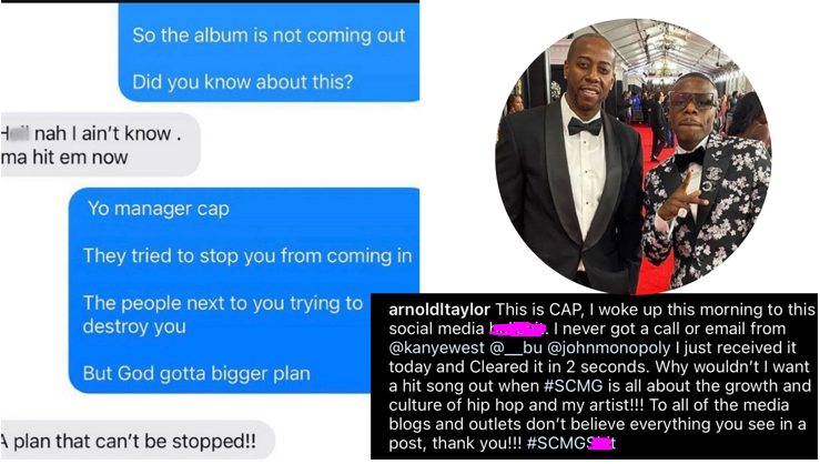 “This is CAP, I woke up this morning to this social media bull****. I never got a call or email from @kanyewest@__bu@johnmonopoly I just received it today and Cleared it in 2 seconds. Why wouldn’t I want a hit song out when #SCMG is all about the growth and culture of hip hop and my artist!!! To all of the media blogs and outlets don’t believe everything you see in a post, thank you!!!”