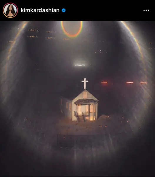 The replica was completed hours before the big listening party on Aug. 26. A huge cross was also placed at the very top of the home.
