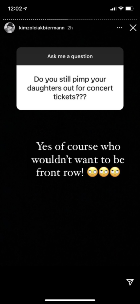 As Kim Zolciak continued to answer questions, a fan asked if she would consider “pimping out“ her daughter for concert tickets again. Zolciak wrote: