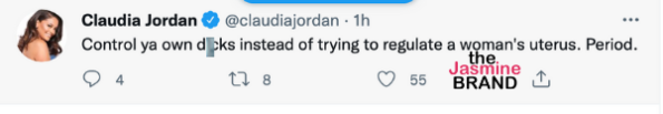 Many people have expressed their outrage for the law and Claudia Jordan, took to Twitter to bash the new regulation. She tweeted,