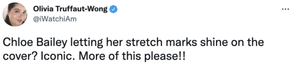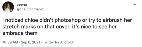 Many Instagram and Twitter users alike have praised Chlöe for her cover art. Many fans love the fact that she chose not to edit out her stretch marks.