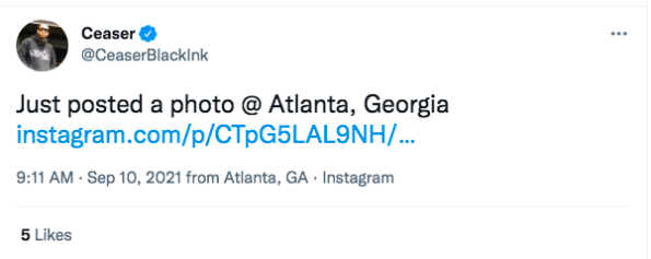 On the same day of the alleged robbery, Ceaser shared on both his Twitter and Instagram accounts that he was in Atlanta for a visit.