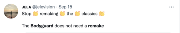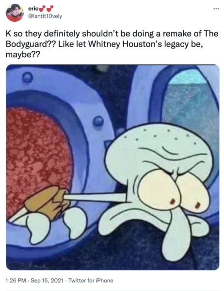 Bodyguard remake .. who thought that was a good idea … pic.twitter.com/lAnOonNLyQ