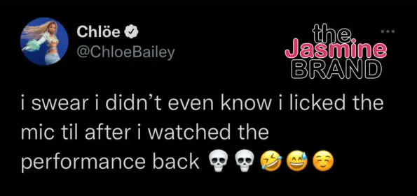 However, in a new tweet, Chloe Bailey is setting the record straight claiming she didn’t intentionally lick the mic.