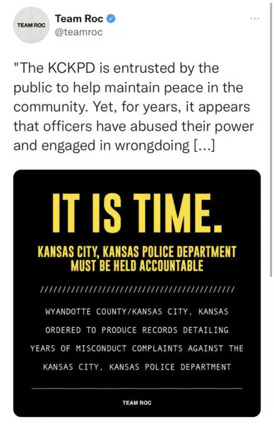 Team Roc, the philanthropic branch of Jay-Z’s Roc Nation, has claimed that the KCKPD hid alleged misconduct, and wants access to documents that would explain complaints filed against individuals in the department’s investigative unit. Team Roc is also requesting documents connected to training and supervision of officers.