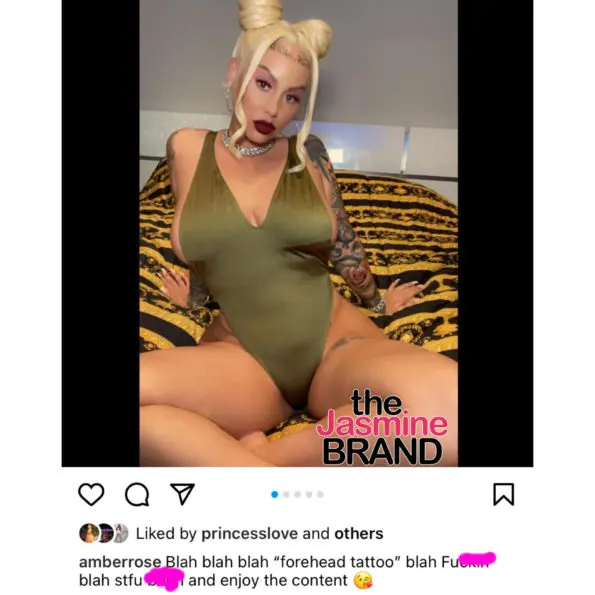 In a new post on her Instagram page, model and actress Amber Rose said she wants those who don’t like her forehead tattoo to shut up.