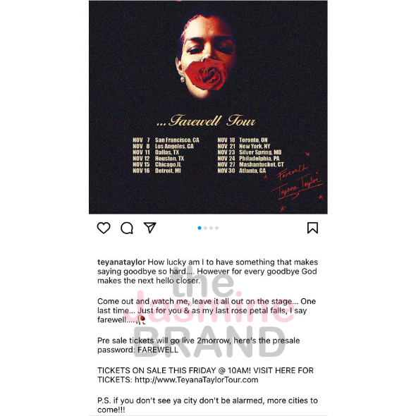 Teyana Taylor is giving fans one more tour before she bows out of the music industry.