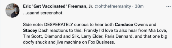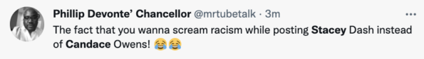 However, despite them rooting for Candace Owens they shared an image to the Tweet that wasn’t of the ‘Blackout’ author but instead well-known actress Stacey Dash.