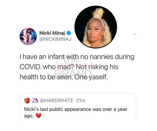 Nicki also revealed that she pulled out from this year’s VMAs over COVID concerns as well.