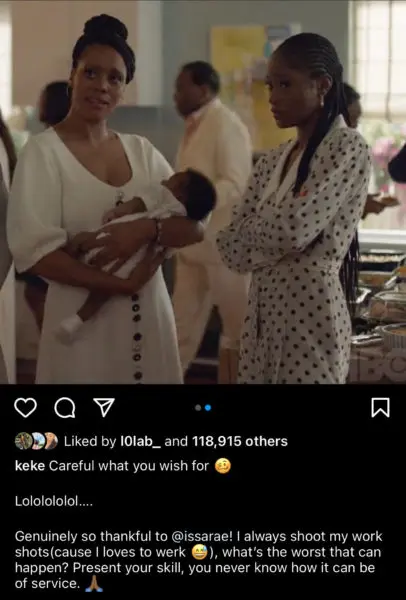 In a new Instagram post, Keke Palmer posted her original tweet to showrunner and actress, Issa Rae which said,